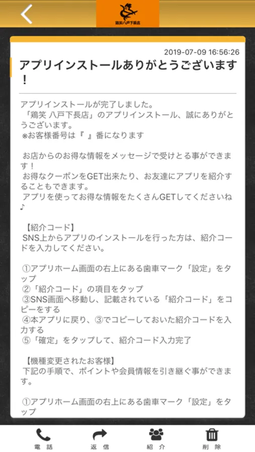 鶏笑 八戸のアプリをSNSを通じてお友達に紹介する事ができます。