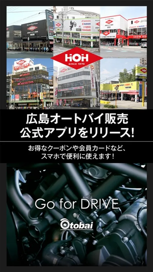 広島オートバイ販売(HOH)グループが公式アプリをリリースしました!