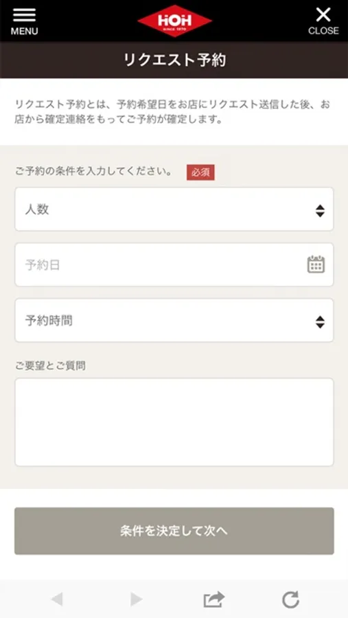 24Hいつでもグループ各店舗の予約のリクエストができます。