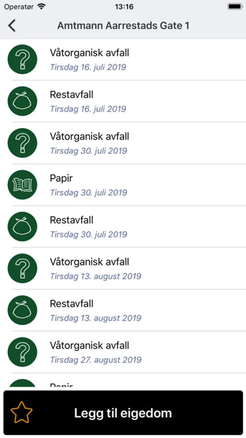 - Kva tid avfallsdunken din blir tømt (tømmeplan).