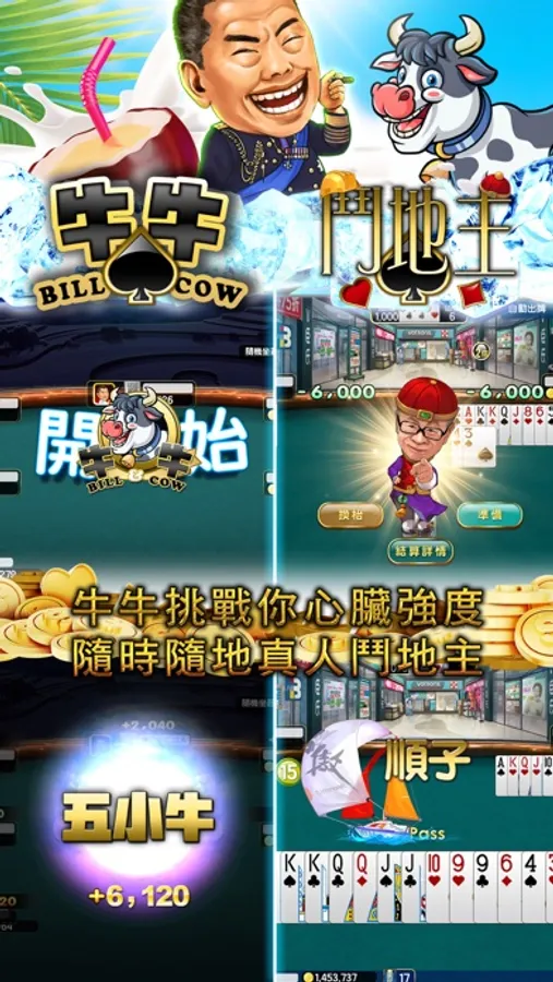 全新牛牛撲克牌登場! 玩法簡單,下注緊張刺激!如果你自認為是心算賭神就快來「牛牛」一下吧!
