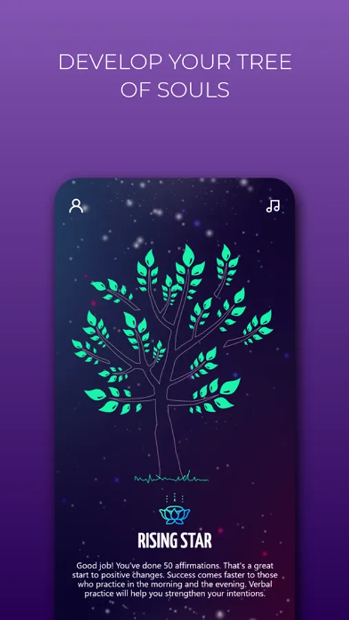 The application will ask you to choose the areas of life in which you want to achieve change. After a short test, you will receive a set of individual affirmations for each day based on your goals and desires. You can add the affirmations that you like the most to your list of favorites, and make up your personal playlist.