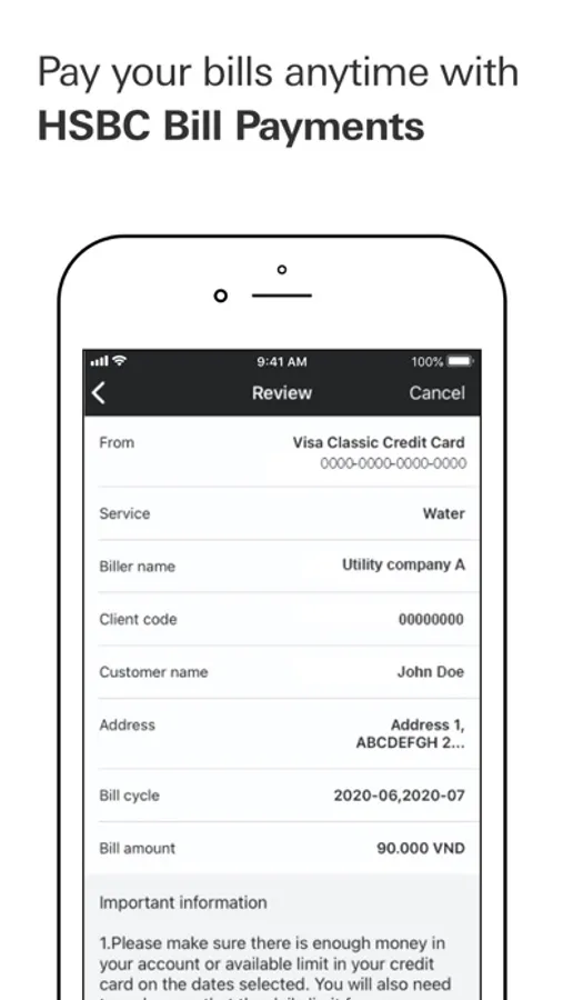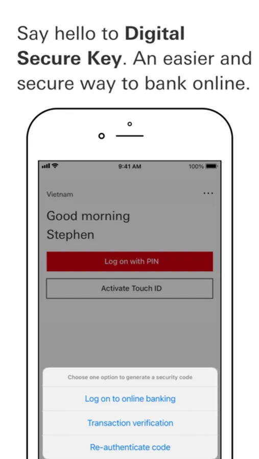 Please be aware that HSBC Vietnam is not authorised or licensed in other countries for the provision of the services and/or products available through this App. We cannot guarantee that the services and products available through this App are authorised to be offered in other countries.