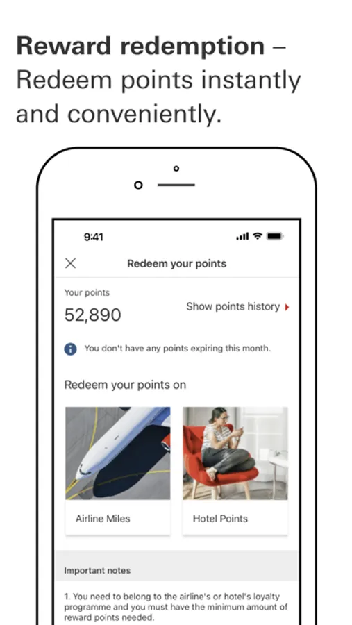 • Redeem your reward points to hotel points or airline miles instantly and conveniently.