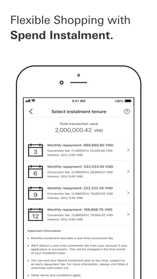 • Enjoy financial flexibility by converting your expenses into monthly instalment