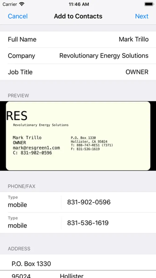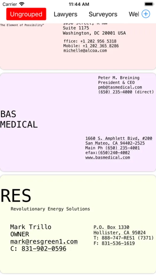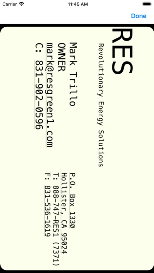 - Detects emails and phone numbers on the card and allows you to tap on them to email/call!
