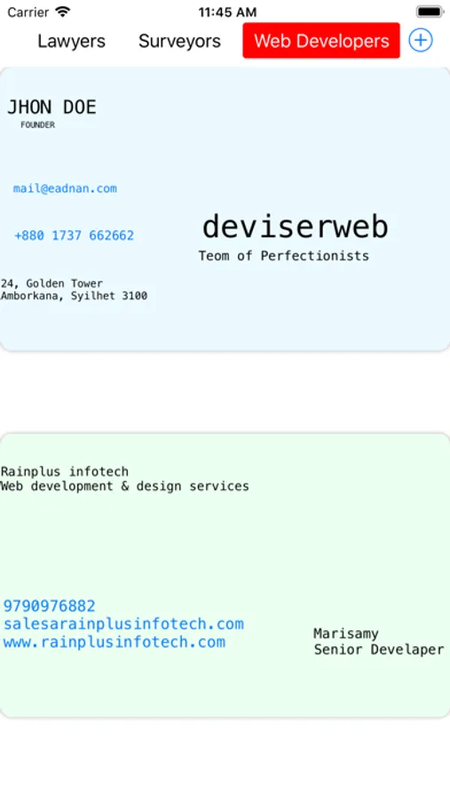 Business Card Helper helps you digitally store all your business cards that you received and allows you to group them however you like! You can directly tap on the email or phone number on the digital business card to directly contact that person!