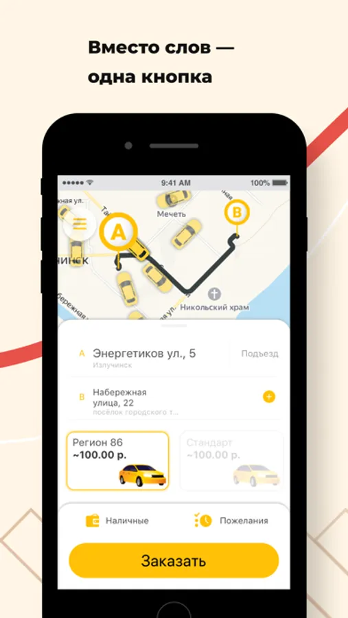 Закажите Такси Регион 86 в городах Нижневартовск, Излучинск через приложение. Это в 3 раза быстрее, чем по телефону! Между желанием доехать до нужного места и поиском автомобиля — пара секунд.
