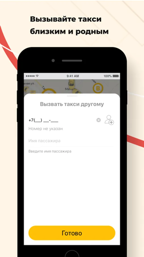 Используйте опцию “Вызвать такси другому” в разделе “Пожелания” и укажите его номер телефона. Когда такси подъедет, на указанный номер придет СМС, а вам — сообщение в приложении.