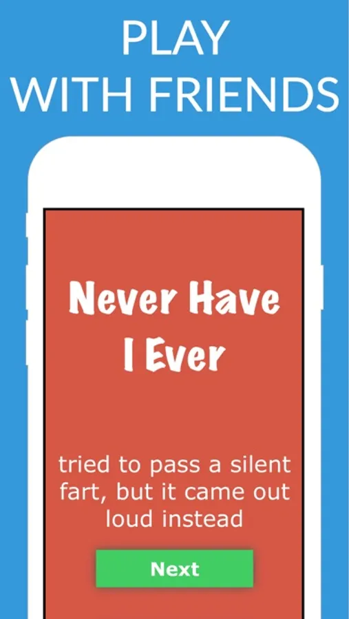 Download Never Have I Ever for free on your iPhone or iPad device, have fun with friends asking dirty and embarrassing questions, and let us know about any bugs, questions, feature requests or any other suggestions.