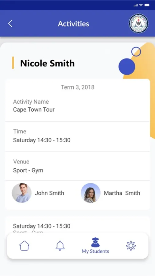 Activities management, so that you never miss your child’s sports matches or extracurricular activities, as these can be seen at a glance;