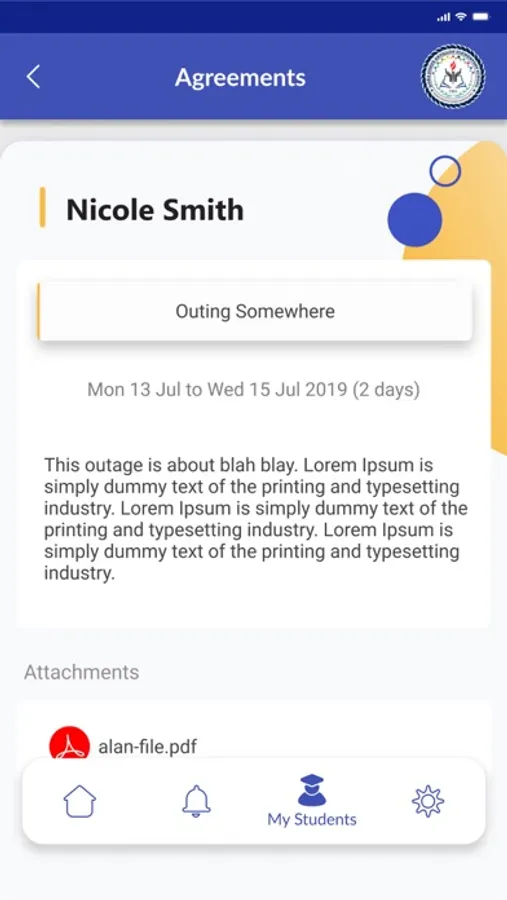 Documentation, any that the institution wishes to make available to parents and students, can be uploaded by the institution onto the mobile application for you to view;