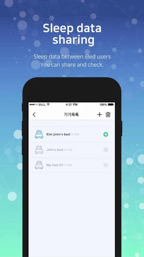 In addition, you can use various functions such as alarm function, bed firmness control, sleep data search of other users.