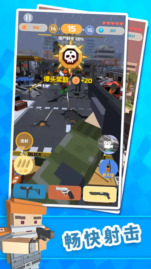 不要怕!拿上你的武器,对着汹涌来袭的尸潮,疯狂的射击吧!