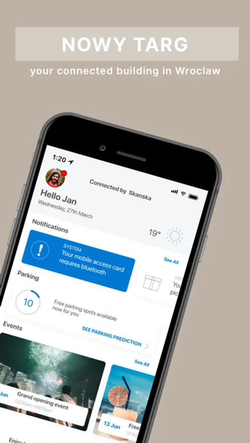 Nowy Targ app is a community application with integrated building services such as access and parking for the Nowy Targ building in Wroclaw, Poland. With the app you can easily invite guests to your office, enjoy cardless mobile access and discover office surroundings. Stay in touch with people in the building with in-app messaging.