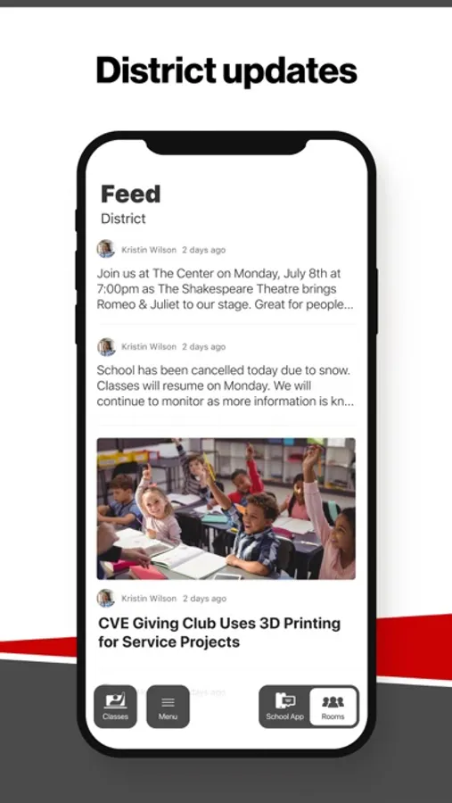 In the Live Feed is where you’ll find updates from the administration about what’s going on in the district right now. Whether that’s celebrating a student’s success, or reminding you about an upcoming deadline.