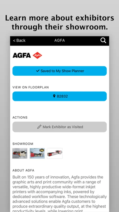 • Browse exhibitors and products through the interactive floor plan