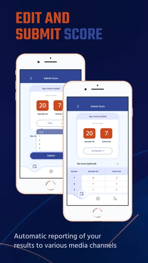 You can also manually score games in-progress and manually report final scores. We are synced with AHSAA, TAPPS, Rank1, DragonFly, and VNN.
