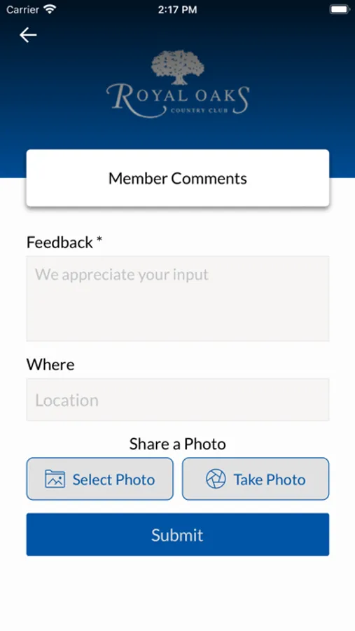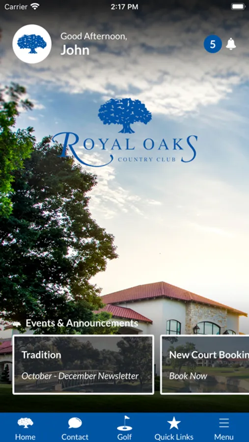 Welcome to Royal Oaks Country Club, where the experience of our members is our primary focus. We have developed a custom app to enhance your experience on and off property. With a touch of a button, you can book a tee time, send a direct message to the front desk, use a digital membership card, view your monthly statement and order food and beverage. We hope you enjoy the new, digital Royal Oaks experience.