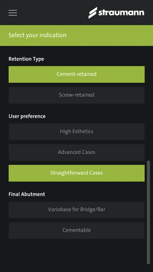 The Prosthetic Selection Guide App from Straumann is for use by licensed healthcare professionals only.