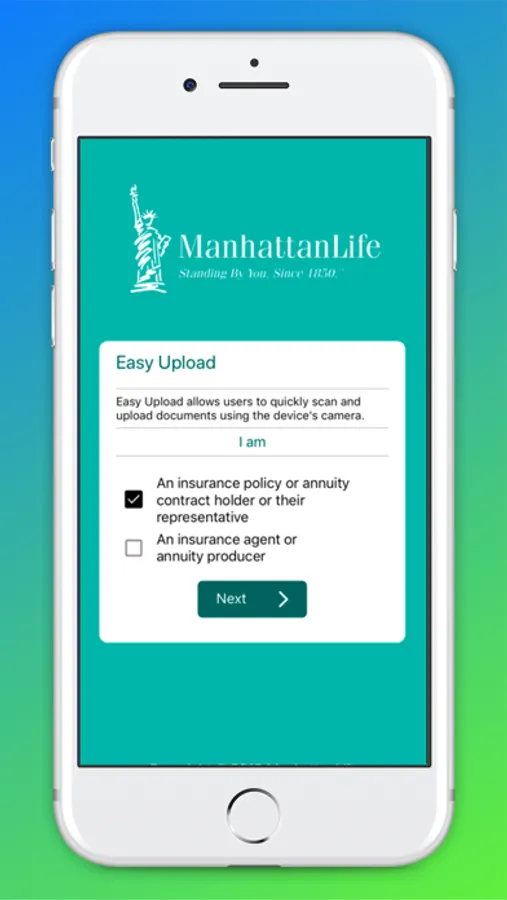 This app works well for both Agents and Policyholders. Go to https://easyupload.manhattanlife.com for more details.