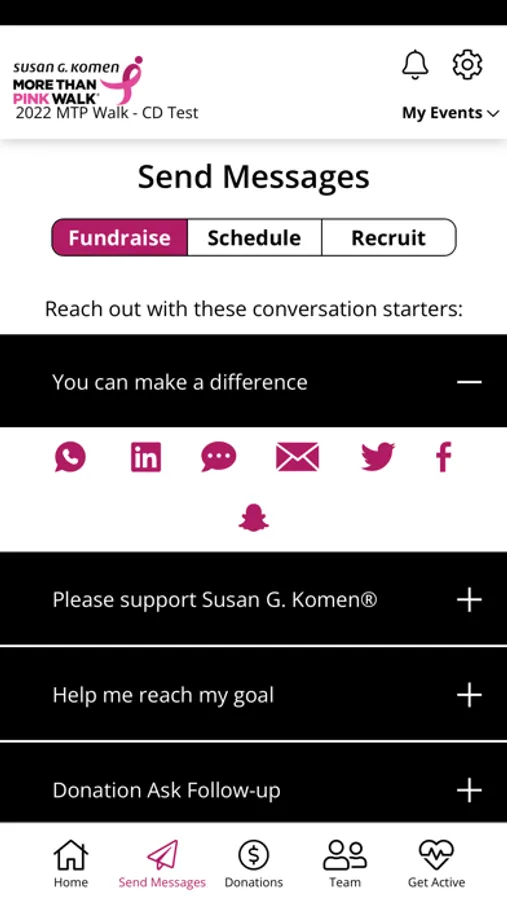 Do your fundraising on the go with your Susan G. Komen MORE THAN PINK Walk® application. Update your personal fundraising page, send emails, check your progress, and connect to Apple HealthKit to track your physical activity – all from the palm of your hand. Susan G. Komen MORE THAN PINK Walk® application is a great tool to track your fundraising progress, and to keep current on all Race news!