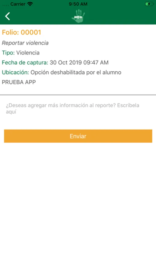Al enviar un reporte te estarás comunicando, por medio de un mensaje, con el responsable para brindarte atención.