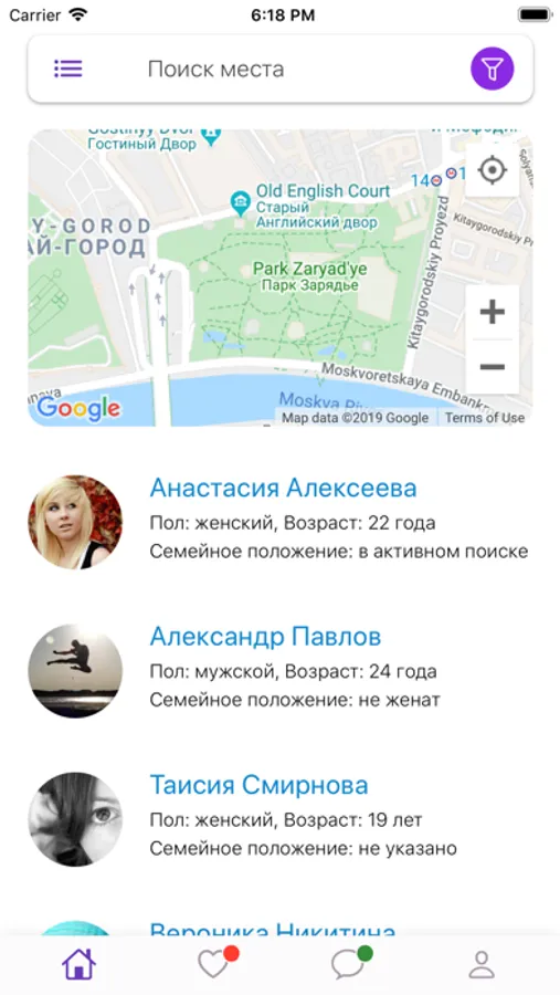 Приложение ищет среди миллионов профилей социальной сети именно тех, кто живет, работает или отдыхает в тех же местах, что и вы.