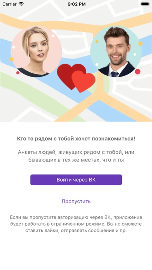Легкий способ познакомиться: Установите приложение, войдите под своим профилем ВКонтакте* и сразу же получите доступ к сотням и тысячам анкет парней и девушек рядом с вами.