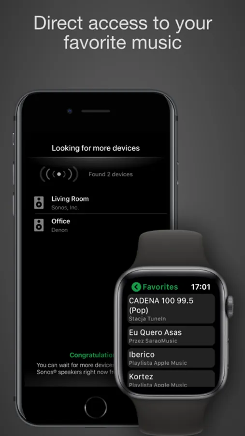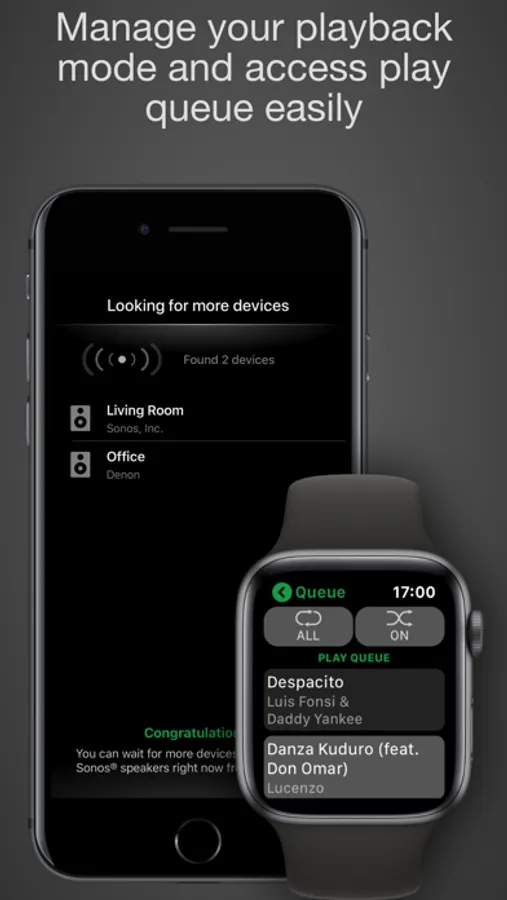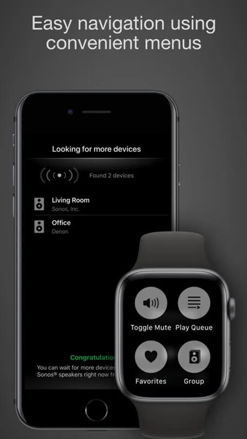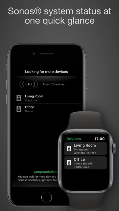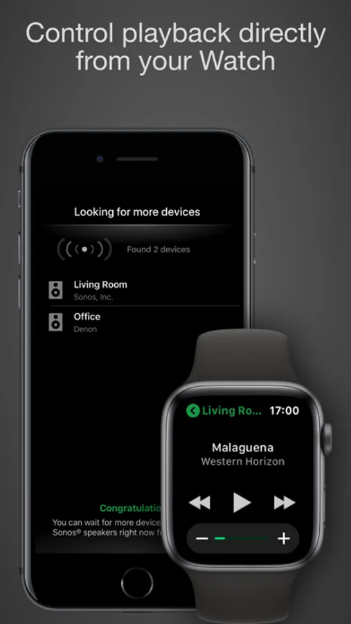 Control all your Sonos® wireless speakers directly from the Watch with easy to use native app. And it works without asking you for Sonos account credentials.