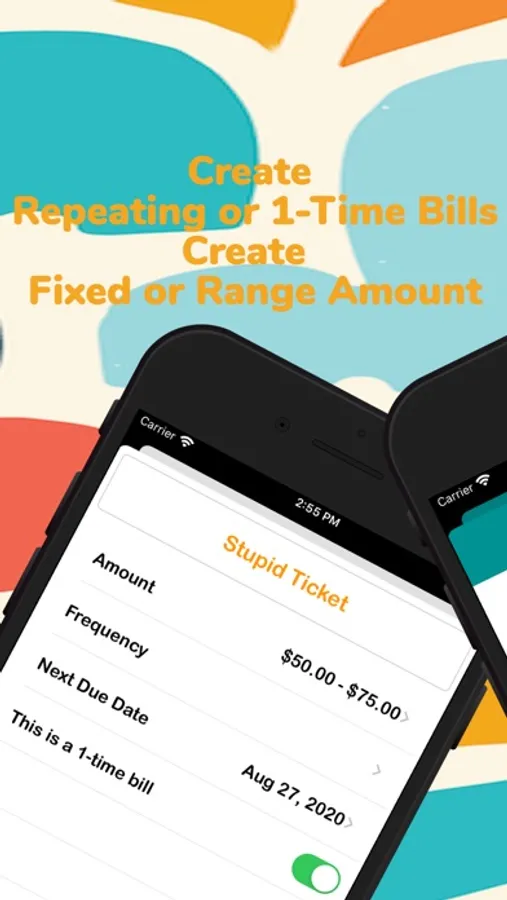 Do your bills vary in their amount? No problem, you can create bills as a fixed or range amount.