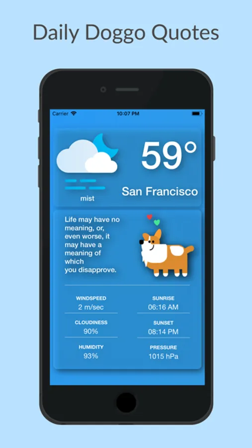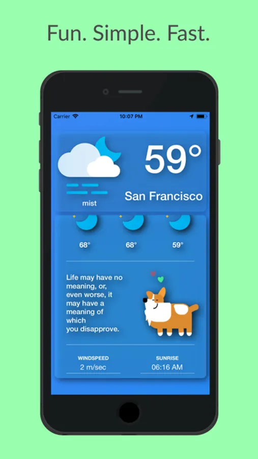 Checking the weather just got cuter. Weatherpup delivers FREE weather conditions near you with FREE daily pupper gifs powered by Giphy! Start your daily routine off with a dose of cuteness or get the mid-day forecast with a smile on your face.
