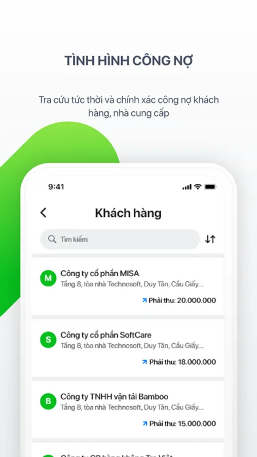 - Tra cứu nhanh số dư công nợ phải thu khách hàng, công nợ phải trả nhà cung cấp