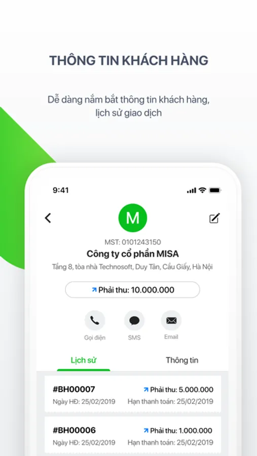 - Thực hiện các nghiệp vụ kế toán: Mua hàng, bán hàng, Thu, Chi,... ngay trên điện thoại di động.