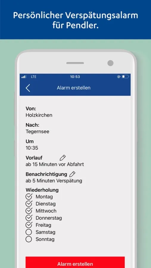 Er bietet Ihnen individuelle Push-Meldungen bei Fahrplanabweichungen für Ihre bevorzugte Verbindung. Dazu erhalten Sie Informationen zu aktuellen Baustellen und Großstörungen. Perfekt für Pendler!