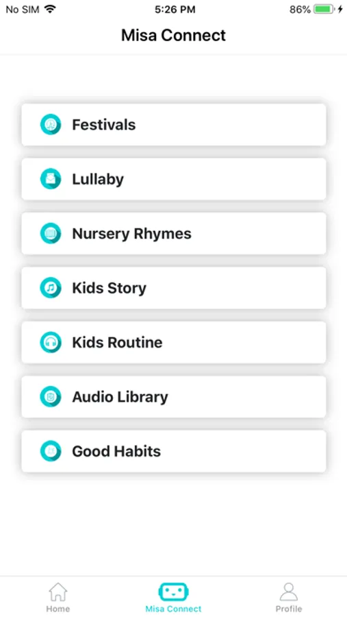 • Play Stories, Nursery Rhymes, Lullabies from your app on Misa.