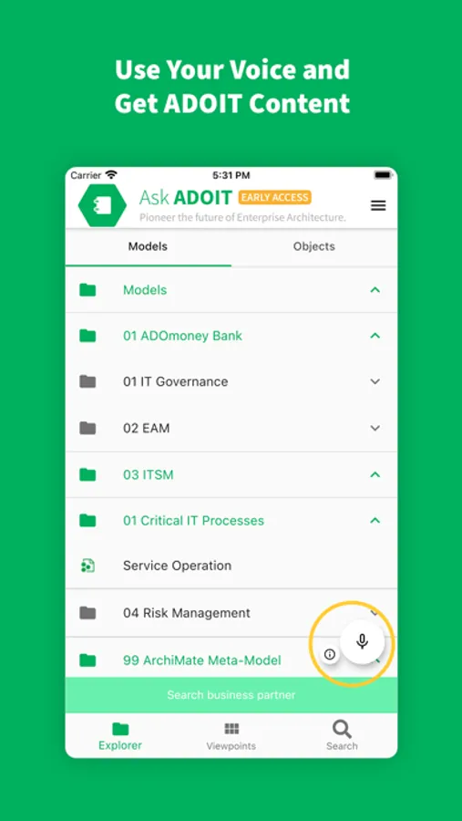 Explore new ways to interact with ADOIT content, play around, and influence the future of working with Enterprise Architecture.