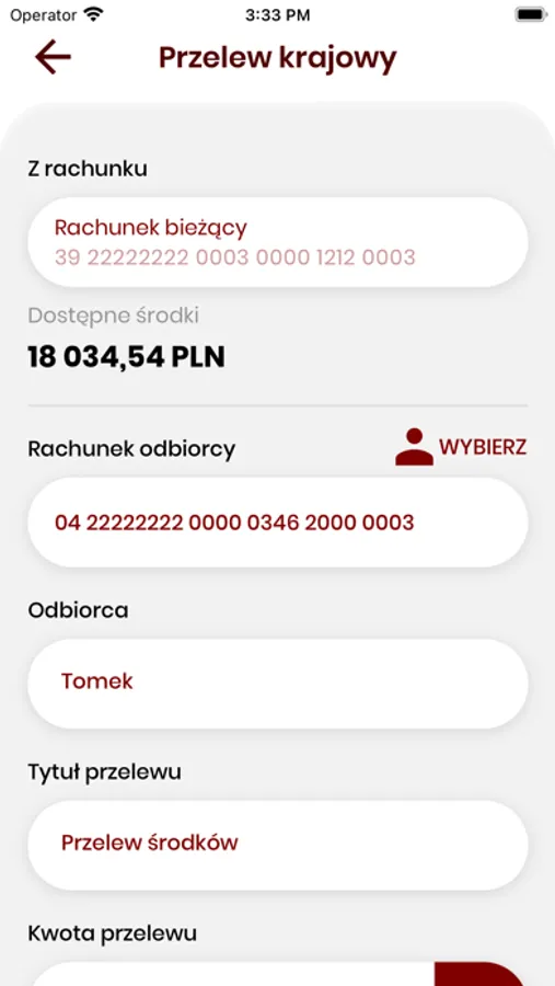 - wyświetlanie szczegółów każdej autoryzowanej operacji (m.in. kwoty operacji, danych odbiorcy przelewu),