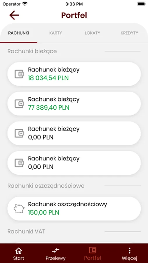 - prezentowanie rachunków, kart, lokat i kredytów klienta,