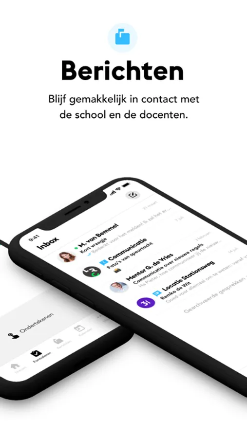 Heb je een vraag aan de school of mentor? Stuur via de app een bericht en ga het gesprek aan.
