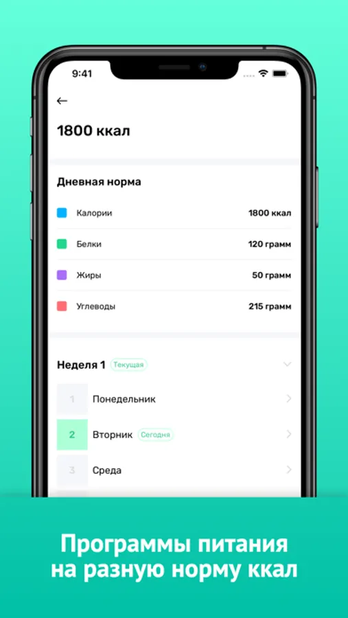 - Заполнение стартовой анкеты для определения оптимальной программы питания