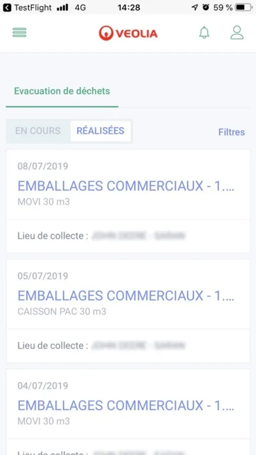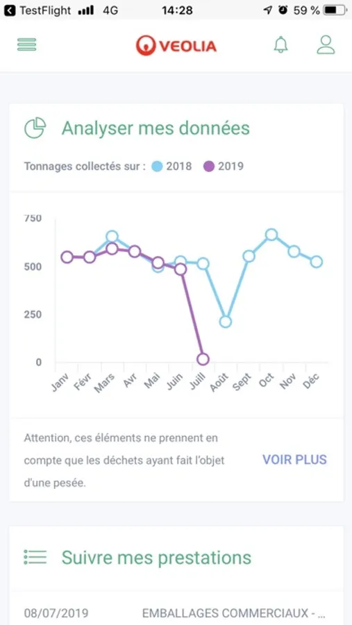 Destinées aux professionnels, avec l'application Veolia & moi - Recycler (Espace Client), vous pilotez vos prestations déchets et recyclage où et quand vous le voulez !