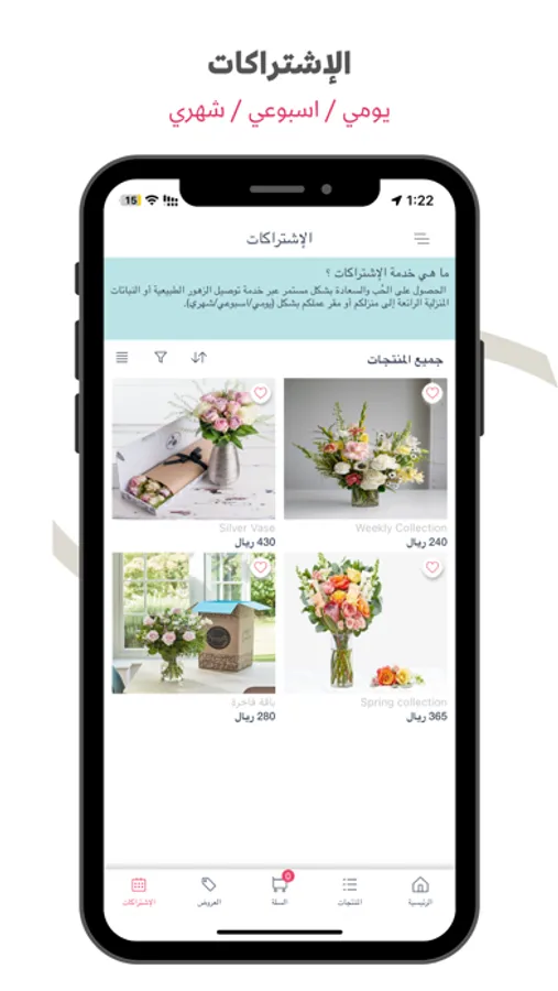 تنسيق هدايا فاخرة، باقات زهور طبيعية، بيع اونلاين عبر التطبيق أو الموقع الالكتروني، توصيل سريع بنفس اليوم، متواجدين في ( الرياض ، الخرج ، الاحساء ، بريدة ، ابها ) وقريباً في جميع مناطق المملكة العربية السعودية، مع خيارات دفع متعددة ( أبل باي، ماستر كارد، فيزا ).