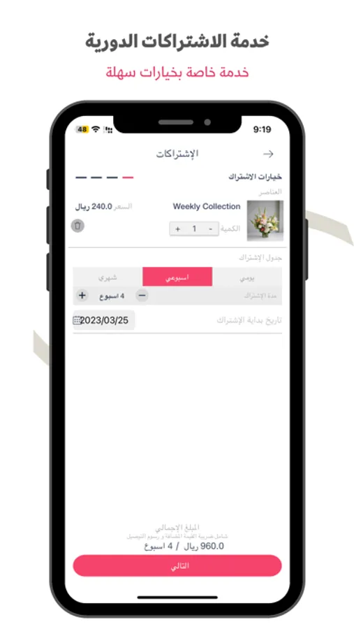 اشتراك (يومي، اسبوعي، شهري). بالزهور الطبيعية أو النباتات المنزلية مع التوصيل المجدول إلى المنزل / المكتب.