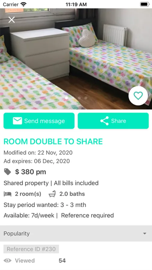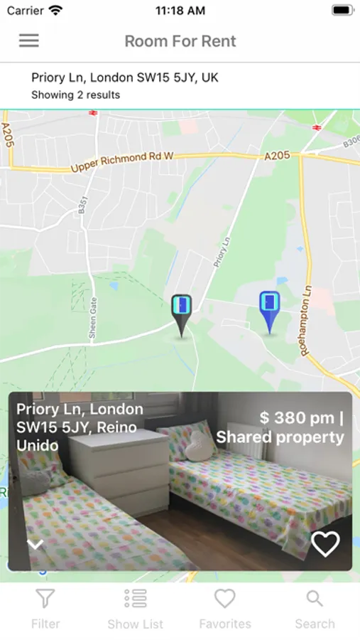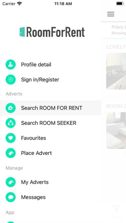 Find a room in your chosen area. The app is free to use for those searching. No charges like some others.