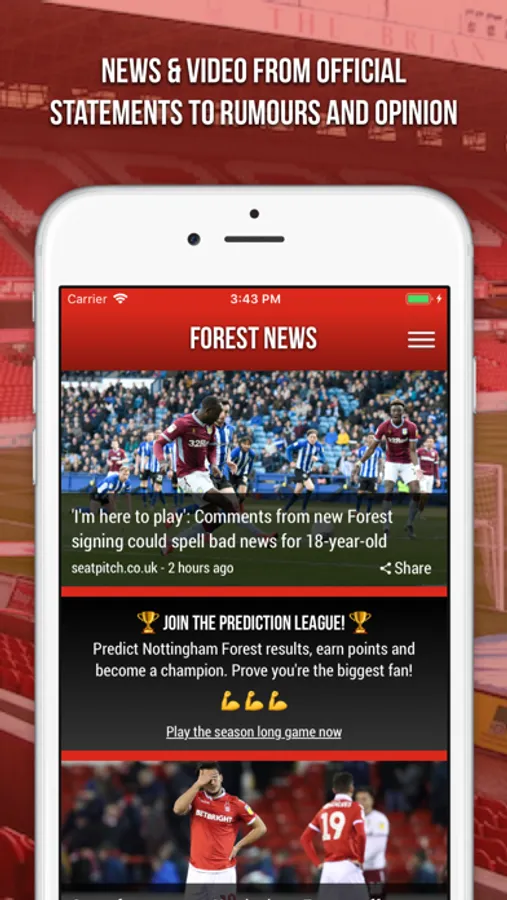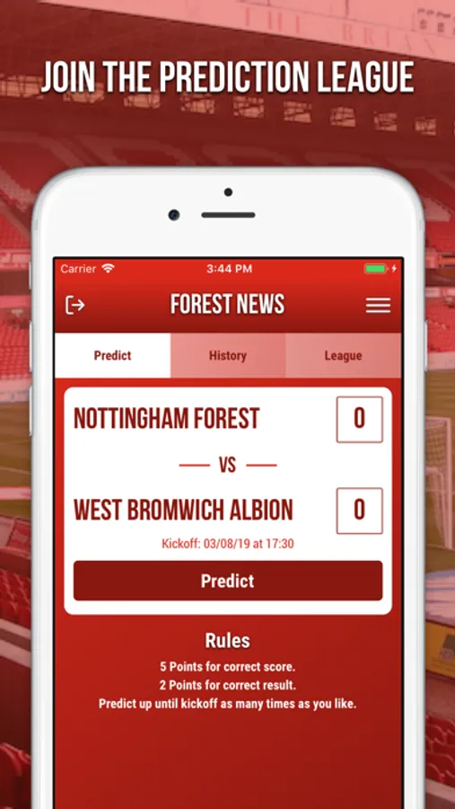 √ Join the prediction league and play the season long game! Compete against other Forest fans by predicting results, earning points and proving you are the biggest fan.
