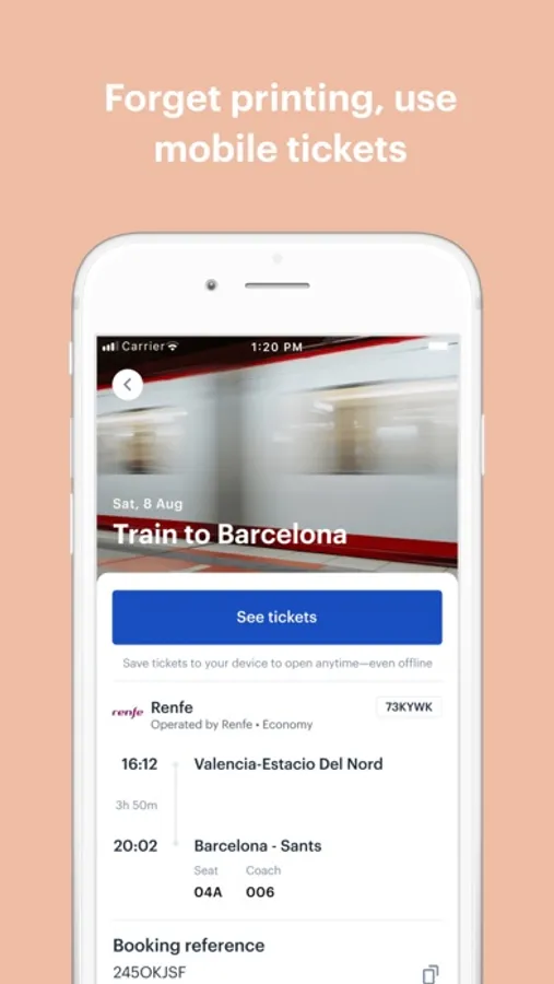 Sail through security with tickets and passes on your phone, and get instant, paperless confirmations for all your trips. No need to print!
