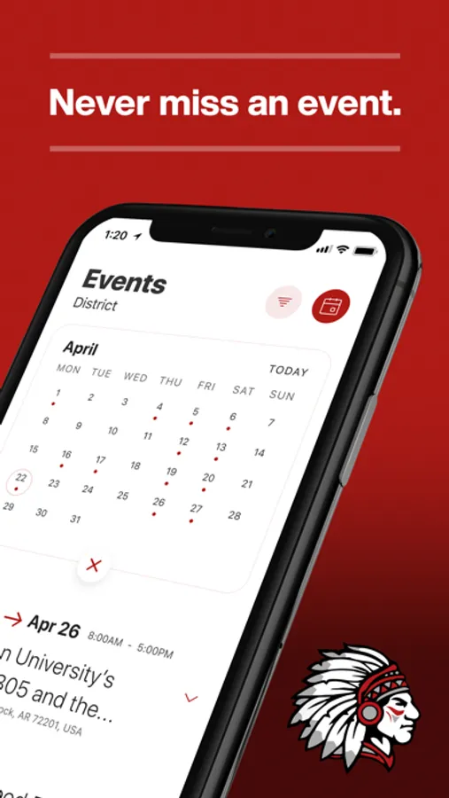 The event section shows a list of events throughout the district. Users can add an event to your calendar to share the event with friends and family with one tap.
