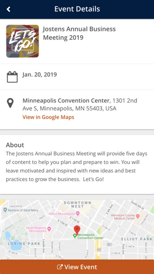 The Jostens Events app provides details on upcoming hosted Jostens events.