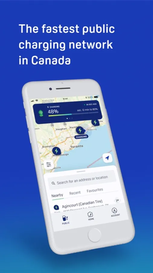 Your companion for easy charging, at home and on the go! Use the Electrify Canada app to schedule your charge at home, find a public charging station, and more.